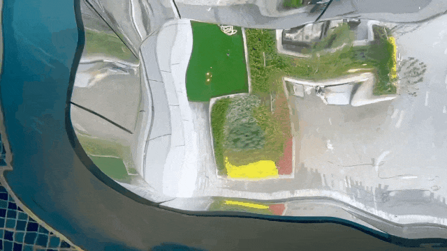 這座泳池利用“琴湖小鎮(zhèn)”作為其背景