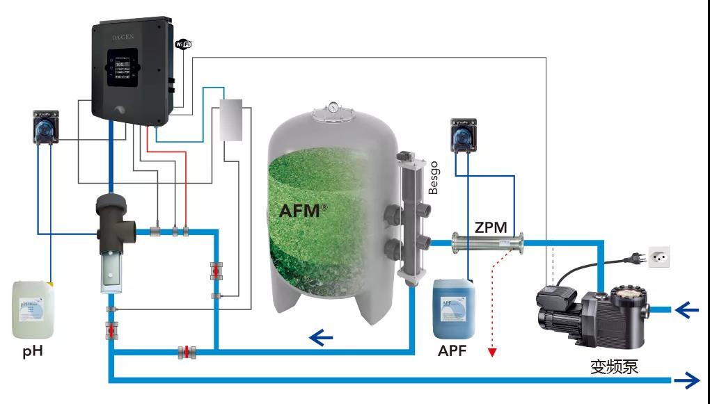 戴思樂集團為了能減少氯消毒劑的投加及臭氧可能導致的安全隱患與傷害,認為游泳池細菌的生長是一個生物學問題,提出一種低氯甚至無氯游泳池水處理系統,讓泳池的水體盡可能減少對各種消毒技術的依賴,用生物學的方法去減少微生物的傳播,對微生物、特別是對致病微生物進行控制,而不是等到微生物繁殖后,再用化學的方法去消滅。讓水盡可能減少對消毒產品的依賴、盡可能多地發揮水體自我療愈功能。