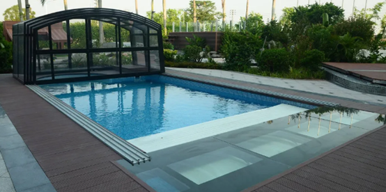 戴思樂的游泳池保溫膜蓋是有設計自動動開關的,泳池蓋是一種自動伸縮的平蓋,通過遙控按鈕就能輕松控制開合,操作很簡單,甚至能夠進行遠程遙控,開啟后,它會自動堆疊到一旁,占據的空間非常少。美觀方便。