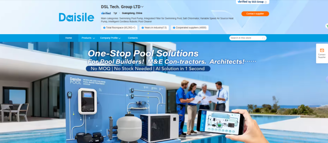 2025年,戴思樂入駐阿里巴巴國際站,以跨境電商模式拓局全球市場。平臺上線的產(chǎn)品系統(tǒng)解決方案,囊括低氯泳池系統(tǒng)、智能泳池系統(tǒng)、智能水質(zhì)在線監(jiān)測設(shè)備及智能無線泳池清潔機(jī)器人等,全面打造出海“拳頭產(chǎn)品矩陣”。此舉標(biāo)志著戴思樂在品牌全球化布局與數(shù)字化營銷轉(zhuǎn)型的進(jìn)程中,邁出了關(guān)鍵一步。