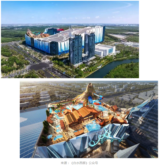 室外區(qū)域的“冰火峽谷”占地12,000平方米,作為目前中國內(nèi)地唯一在建筑體屋頂建造而成的室外水上樂園,預計明年夏日正式開放。